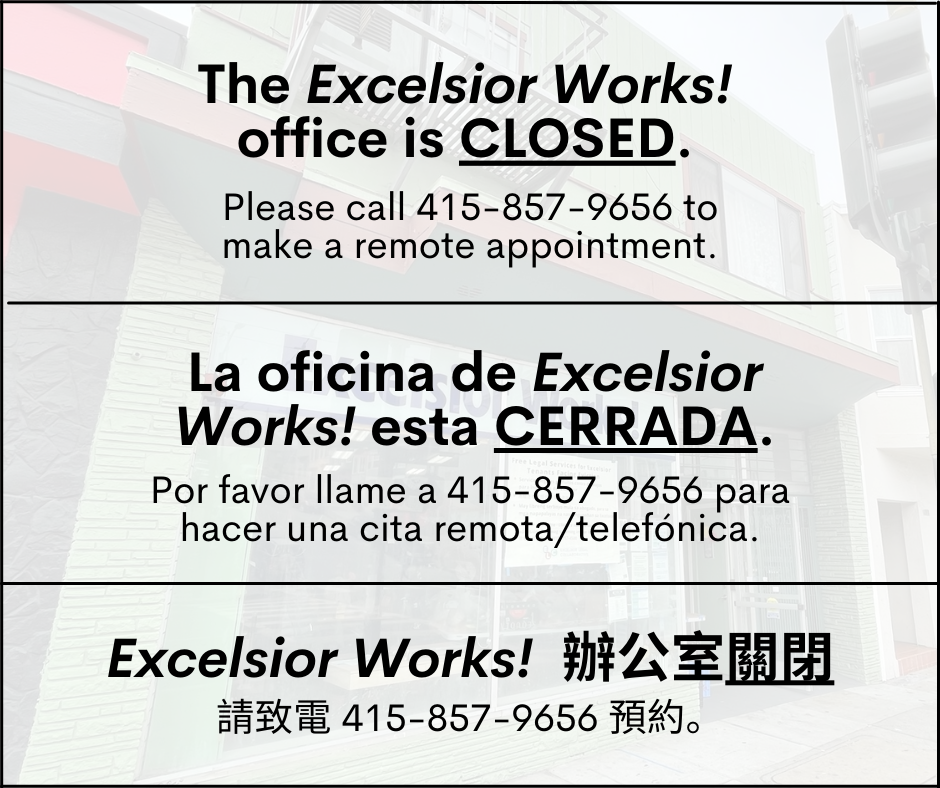 At Excelsior Works! we provide direct service staff and work alongside other community organizations that contribute service connection support. Our team works alongside PODER, Latino Task Force, Excelsior Strong, and more.